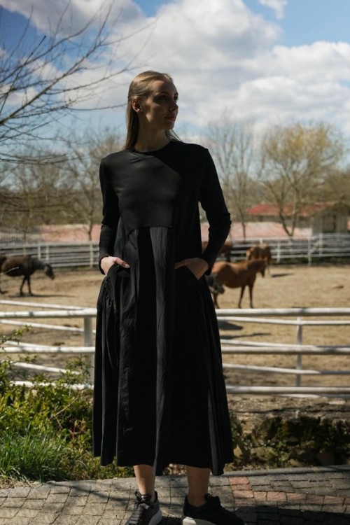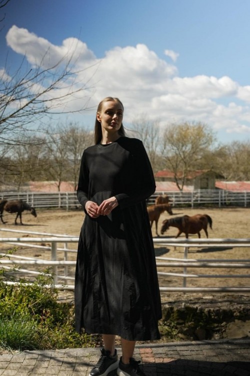 Zarif ve şık bir tasarıma sahip olan bambu ve paraşüt kumaştan yapılmış elbise,  modern ve fenimen bir görünüm sunar. Hafif yapısı ve nefes alabilir dokusuyla rahat bir kullanım sağlarken,paraşüt detaylarıyla hareket katıyor. ''Gardırobunuzdaki özel anlar için mükemmel bir seçenek.''