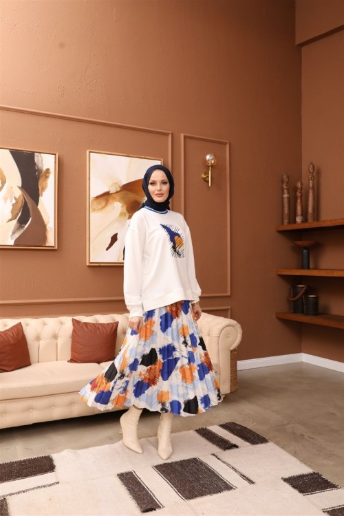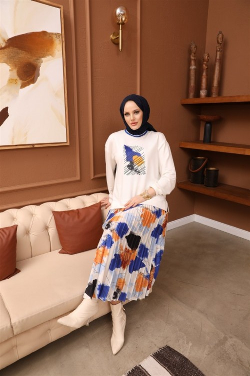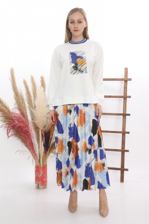 Baskılı Saten Etek İkili Takım KZ3-5005-M