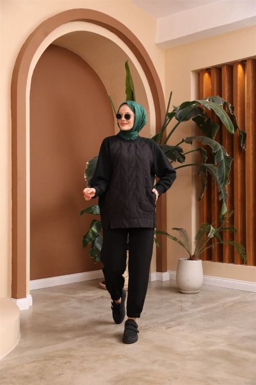 "Şıklığı ve konforu bir araya getiren bu ikili takım, kapitone garnili tesettüre uygun eşofman takımı, özel olarak tasarlanmış bambu kumaştan üretilmiştir. Yumuşak dokusu ve nefes alabilir yapısıyla konforlu bir giyim deneyimi sunar. Şıklığı ve rahatlığı bir araya getiren bu takım, özellikle tesettür giyimde tarzını korumak isteyenler için ideal bir seçenektir. Özel tasarım detayları ve dayanıklı malzemesiyle günlük kullanıma uygun, şık ve fonksiyonel bir tercihtir.
