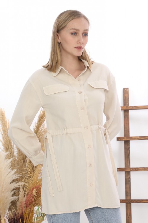 Tensel Bel Detaylı Cepli Gömlek Tunik KZ04-7107-K