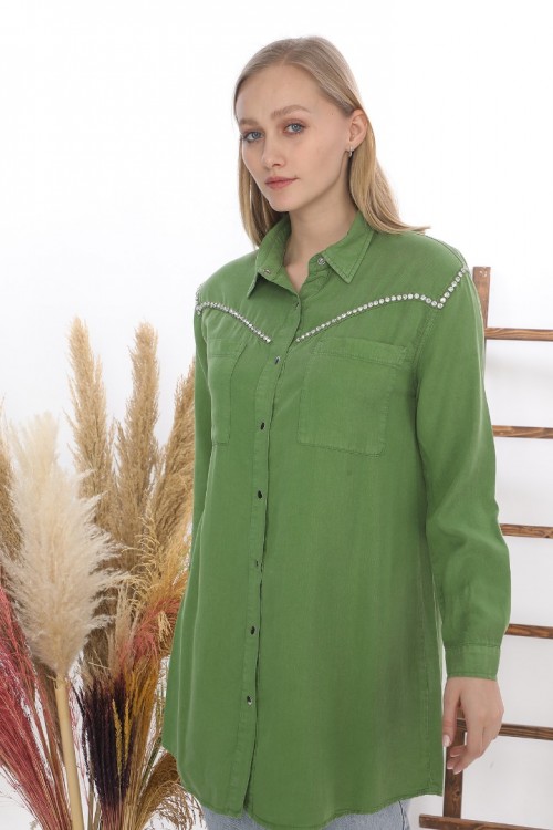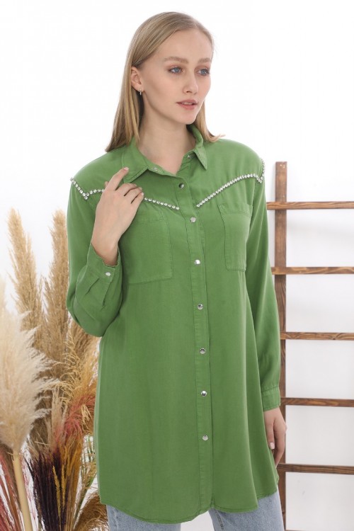 Tensel Taş İşlemeli Cepli Gömlek Tunik KZ04-7109-Y